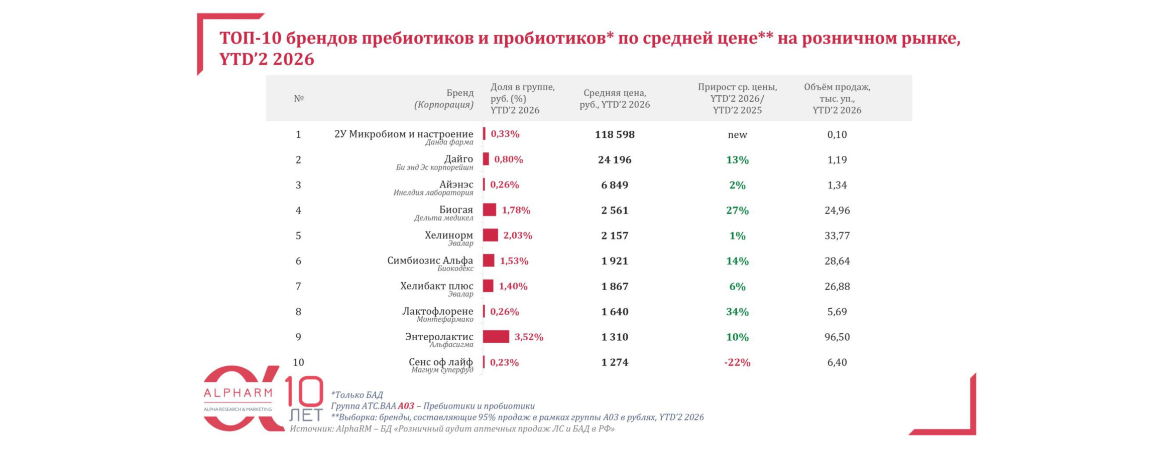 ТОП-10 брендов пребиотиков и пробиотиков по средней цене